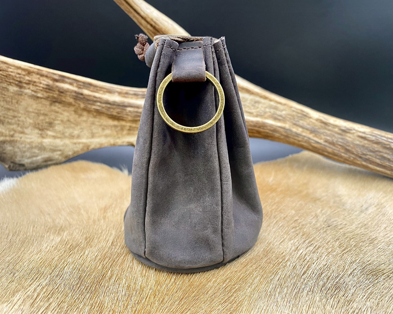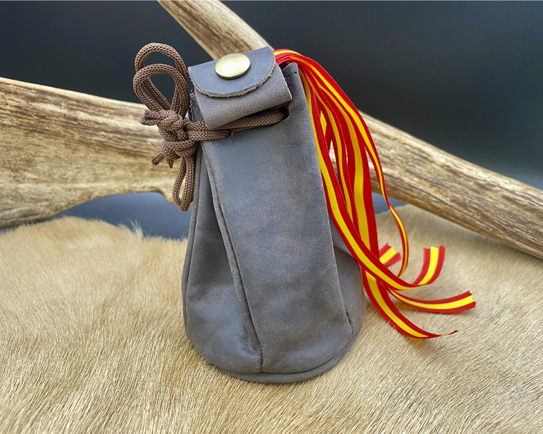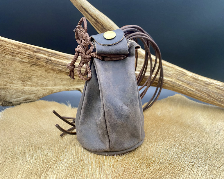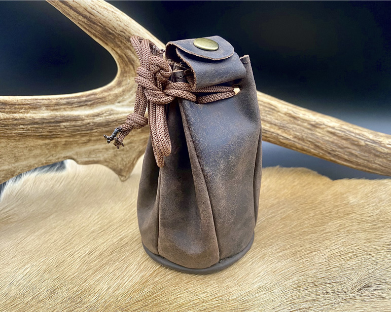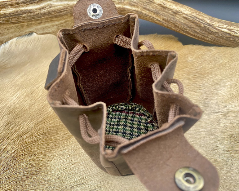 Zurroncillo para transportar tus marcareses. Hecho en piel de búfalo y con dos cierres, uno de cordaje de amarre y otro de botón. En el lateral cuenta con una anilla metálica para engancharlo a las trabillas del pantalón para no tener necesidad de llevarlo en la mano. Base interior forrada en elegante tela Jacquard.